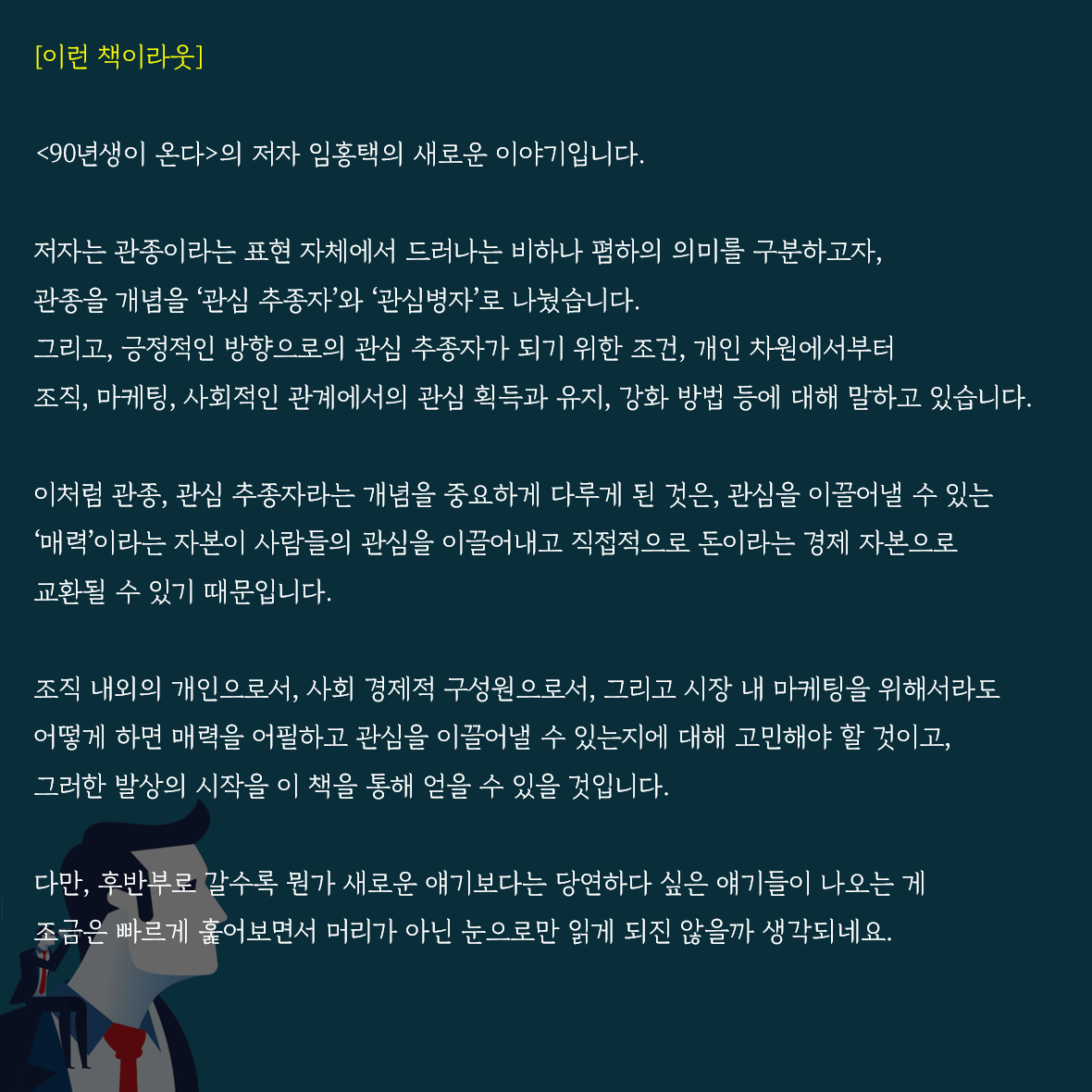 | [때때로 찾아가는 임매니저의 북식당 #4] 마케터의 기본기 - 주세훈 (0) | 2021.01.27 |