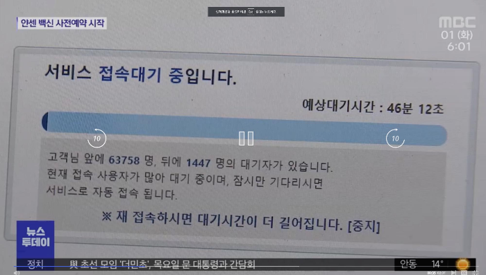 관련 뉴스: 얀센 '선착순' 예약 접수... 한때 접속자 몰려 - MBC, 2021. 06. 01