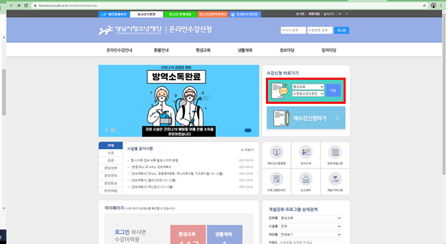 온라인 수강신청 서비스를 제공하고 있습니다.