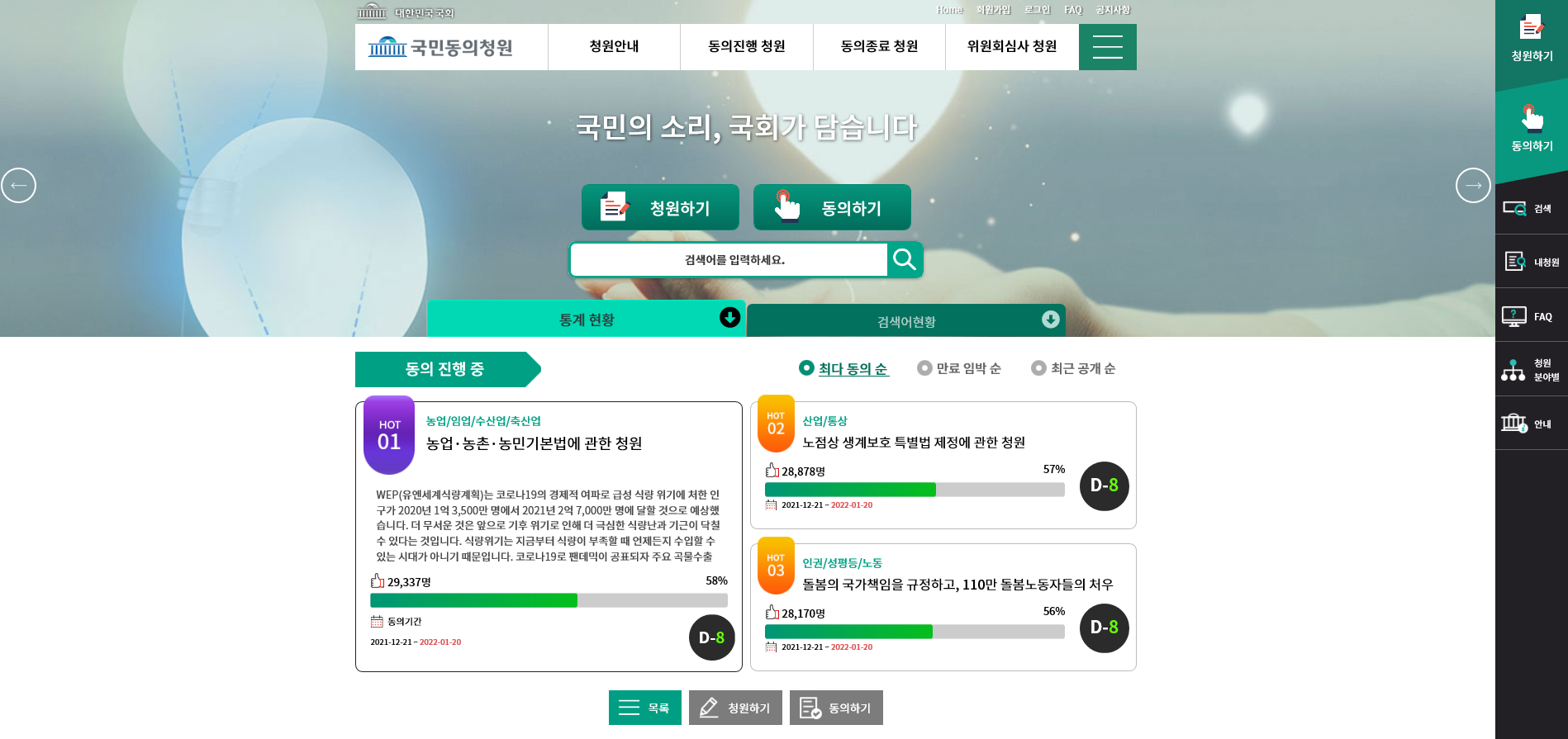 많은 분들이 국민동의청원 홈페이지에 방문하여