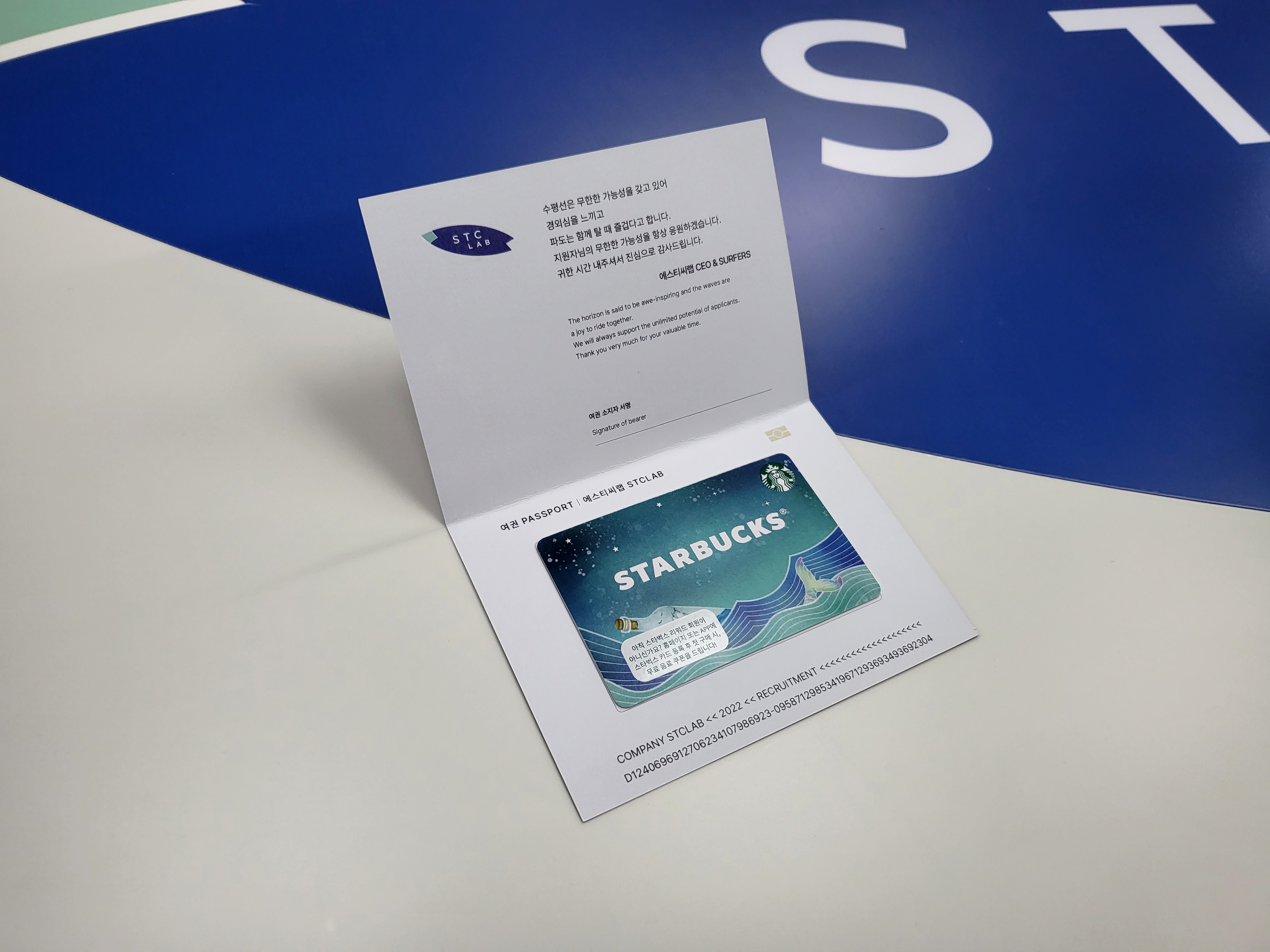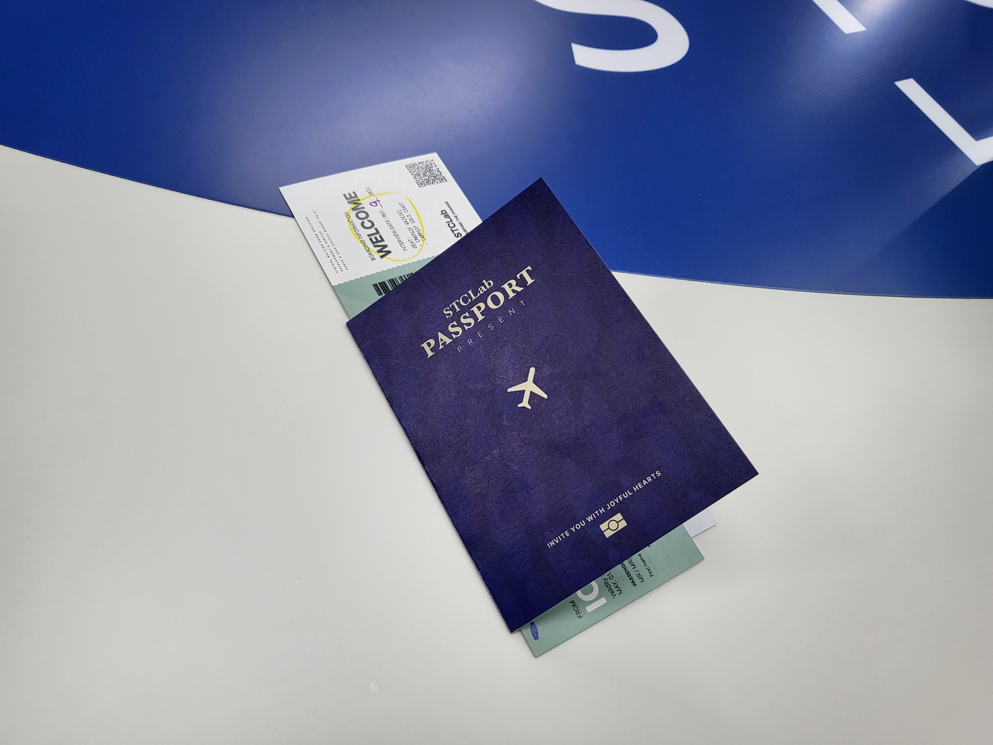 에스티씨랩으로 향하는 편도행 티켓을 멋지게 디자인해서 선물하고 있습니다.