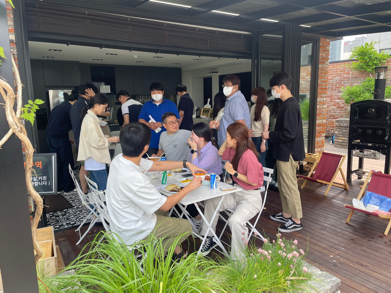 캠프지 7층 루프탑에서 짜장면 파티를 열었습니다.