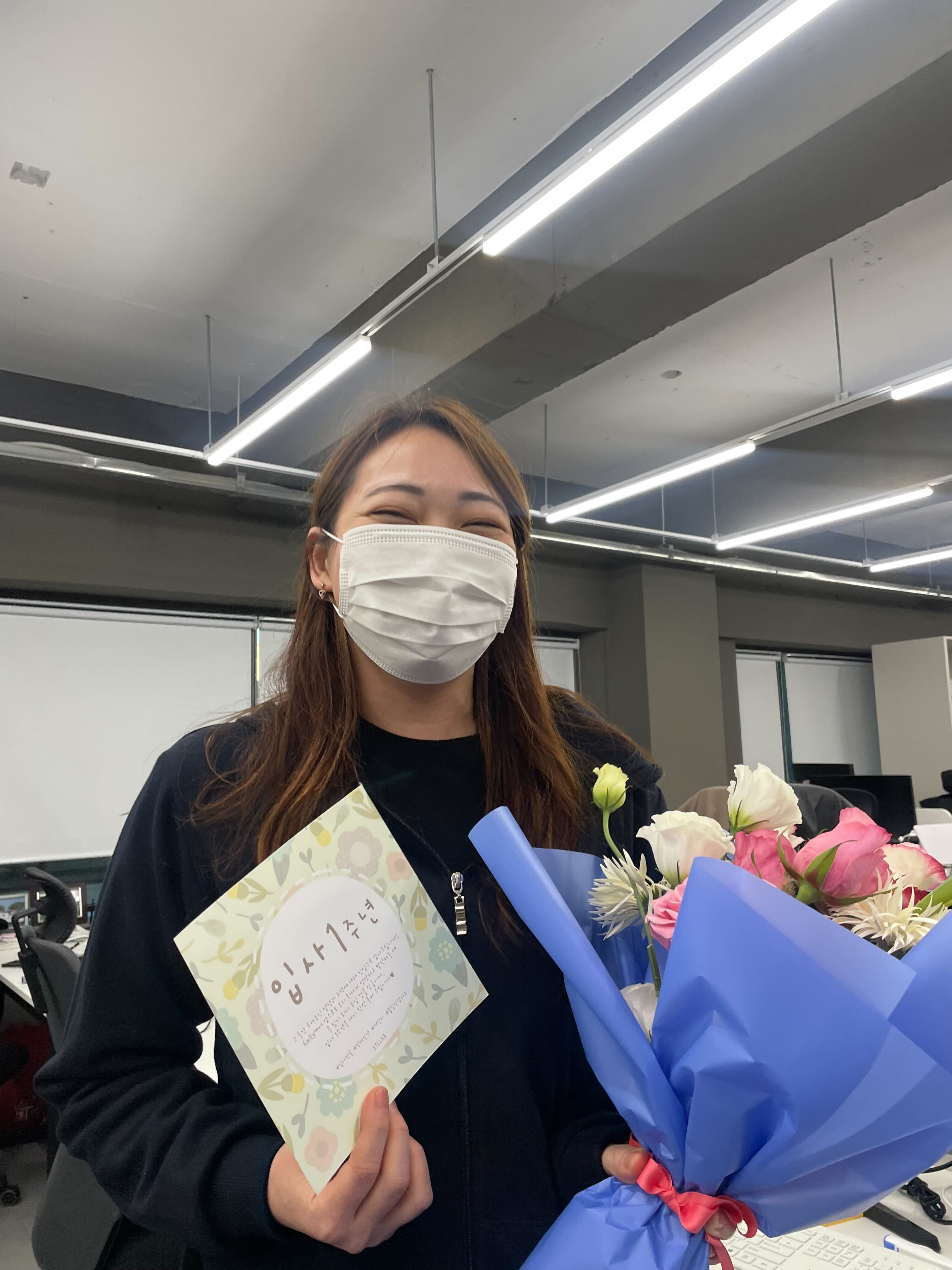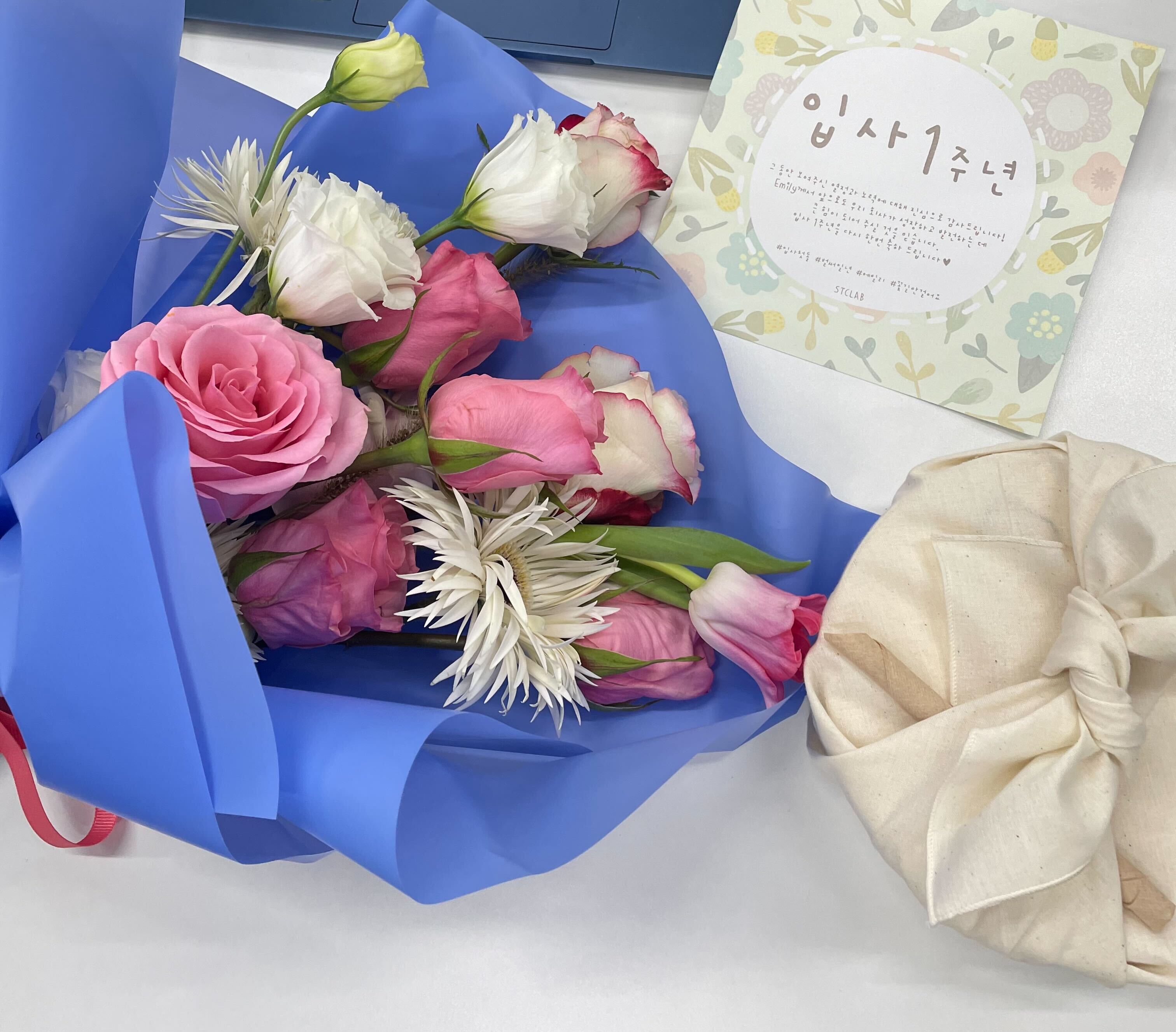 P&C팀에서는 예쁜 꽃다발과 맛있는 떡, 감동스런 카드까지 준비해 드렸습니다.