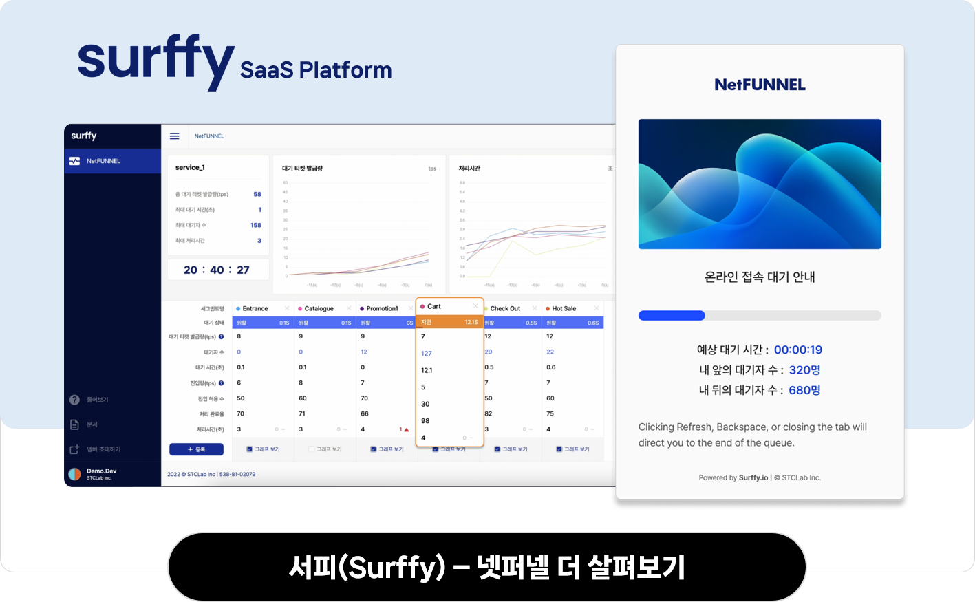 10시가 되면 순간적으로 폭주하는 동시 접속 트래픽을 클릭한 순서대로 모두 넷퍼넬이 관리합니다.