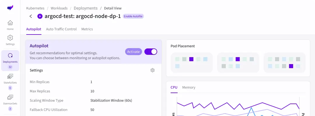 ▶ 스마트 사이징(Smart Sizing): 수직 확장을 통해 CPU 및 메모리 요청량을 머신러닝 기반으로 지속적으로 최적화합니다. 성능과 비용을 균형 있게 관리할 수 있도록 돕습니다.